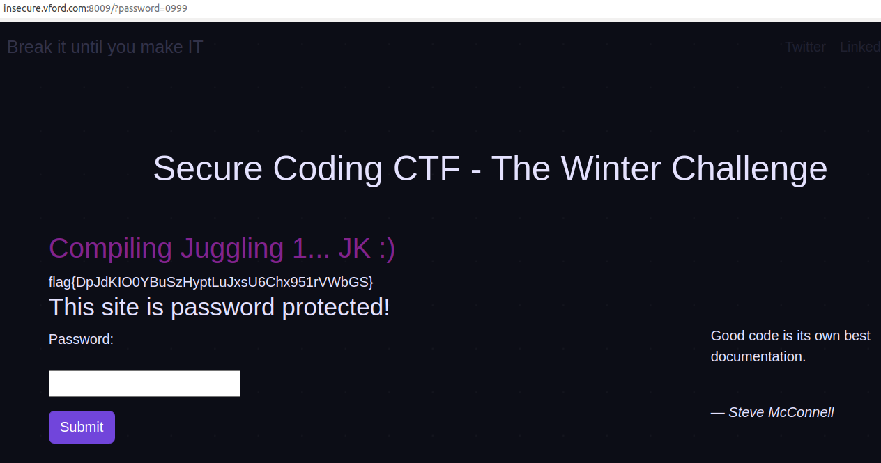 Sau đó chúng ta có thể nhập mật khẩu và lấy được flag.