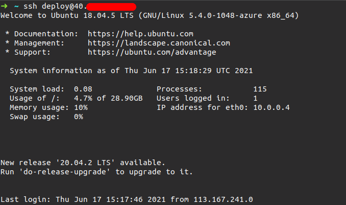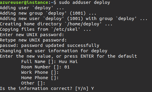 Giờ đây, bạn đã có thể cho phép bất kì ai truy cập vào server với account user deploy, còn user root (azureuser) thì chỉ có mình bạn mới có thể truy cập được.