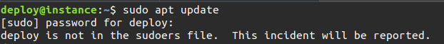 Tuy nhiên, hiện tại thì user deploy này chưa thể chạy với quyền sudo: