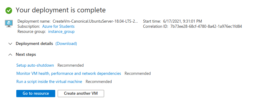 virtual machinecủa chúng ta, chọnGo to resource.![]()